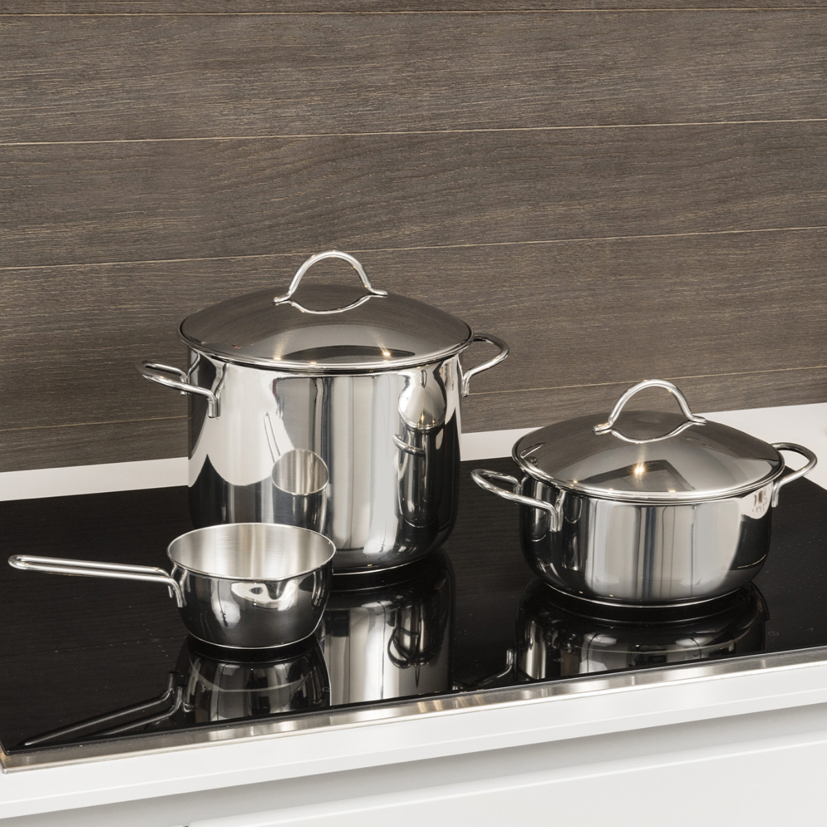Bonita - одна из самых широких коллекций в каталоге Barazzoni, включает в себя все необходимое на кухне. Серия Bonita имеет базовый, классический дизайн, который востребован во все времена. Все предметы серии изготовлены из высококачественной нержавеющей стали марки 18/10. Все предметы коллекции подходят для всех видов плит.