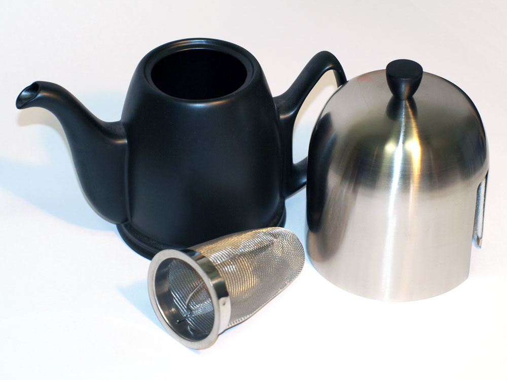 Фарфоровый заварочный чайник на 8 чашек без крышки, черный, артикул 150447.